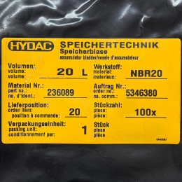 236089 Blase 20L*7/8-14UNF/VG5 NBR20/P460(kompl # 蓄能器皮囊 # HYDAC 一 贺德克