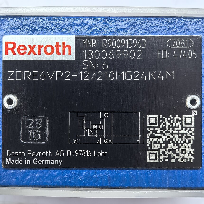 R900915963 ZDRE6VP2-12/210MG24K4M # 比例压力控制阀 # Rexroth // 力士乐R900915963 ZDRE6VP2-12/210MG24K4M # 比例压力控制阀 # Rexroth // 力士乐 R900915963 ZDRE6VP2-1X/210MG24K4M # 比例压力控制阀 # Rexroth // 力士乐 比例减压阀(Z)DRE(E)