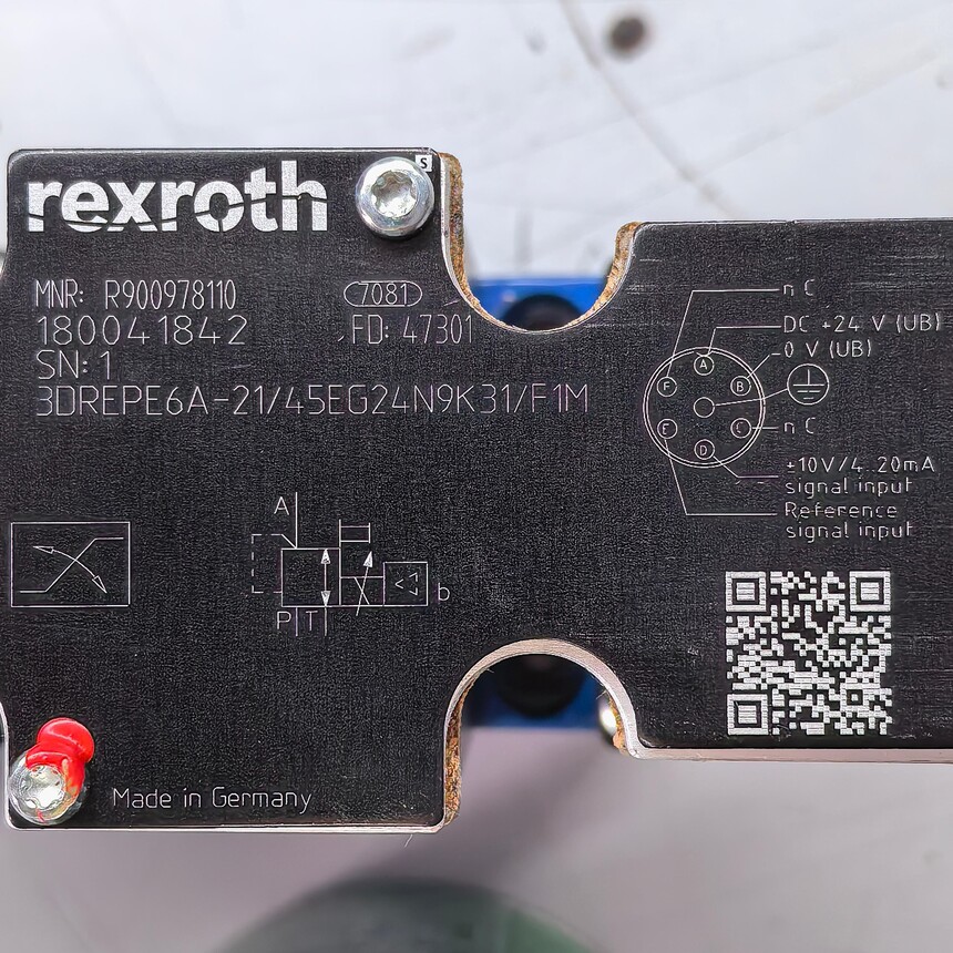首页 >> 产品实图 >>Rexroth 一 力士乐 >> R900978110 3DREPE6A-21/45EG24N9K31/F1M # Rexroth // 力士乐,比例阀